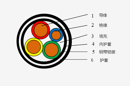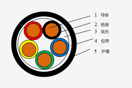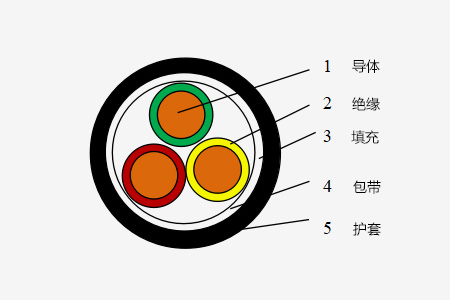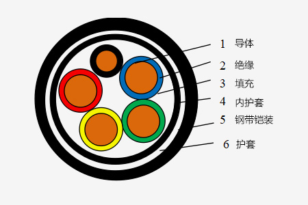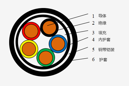 0.6/1kV 3+2芯交联聚乙烯绝缘钢带铠装聚氯乙烯护套耐火电力电缆(NH-YJV22, NH-YJLV22)