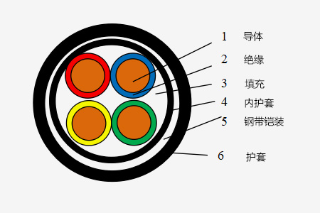 0.6/1kV 3+1芯交联聚乙烯绝缘钢带铠装聚氯乙烯护套耐火电力电缆(NH-YJV22,NH-YJLV22)