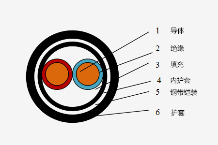 0.6/1 kV 两芯交联聚乙烯绝缘钢带铠装聚氯乙烯护套耐火电力电缆(NH-YJV22、NH-YJLV22)