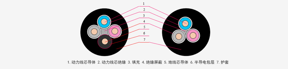 2、用途:本产品共交流额定电压6kV、10kV及以下移动配电装置及矿山采掘机械、起重运输机械用。