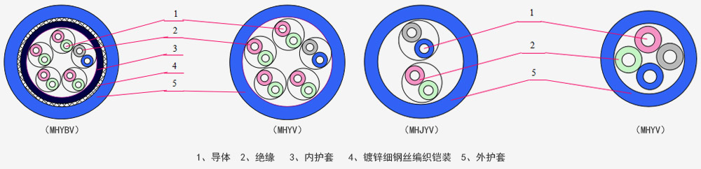 3、电缆最小弯曲半径:MHYV及MHJYV型电缆为电缆外径的10倍;MHYBV型号为外径的15倍。